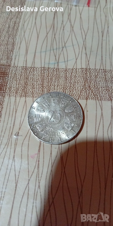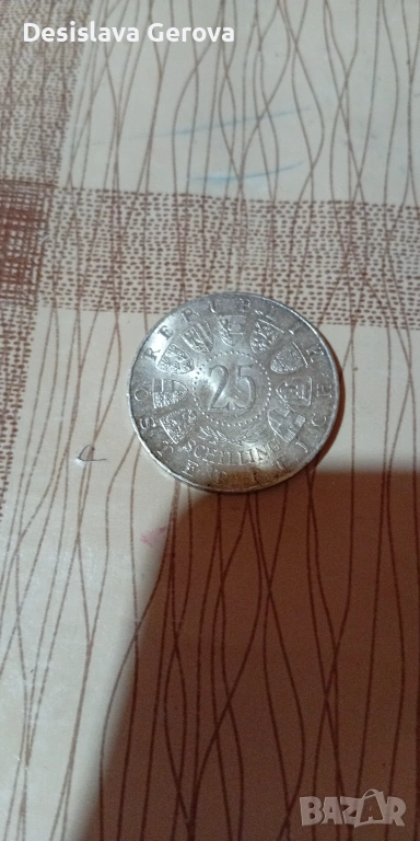 Сребърна 25 шилинга-държава Австрия,13 грама проба .800 сребро