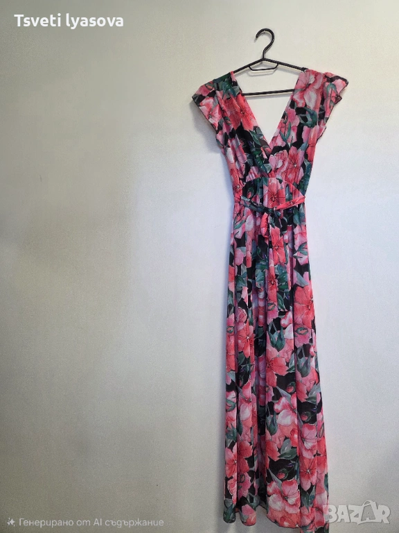 Дамска рокля от изключително лека материя,отговаряща на размер М.Дължина от рамо140см.