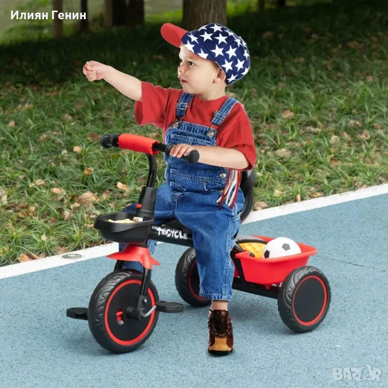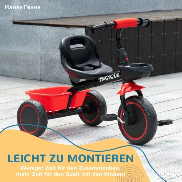 Детска триколка AIYAPLAY с колан за кръста, 2 кошници, регулируема по височина седалка, метална рамка, за деца 2-5 години, черна+червена - 55.00 €.