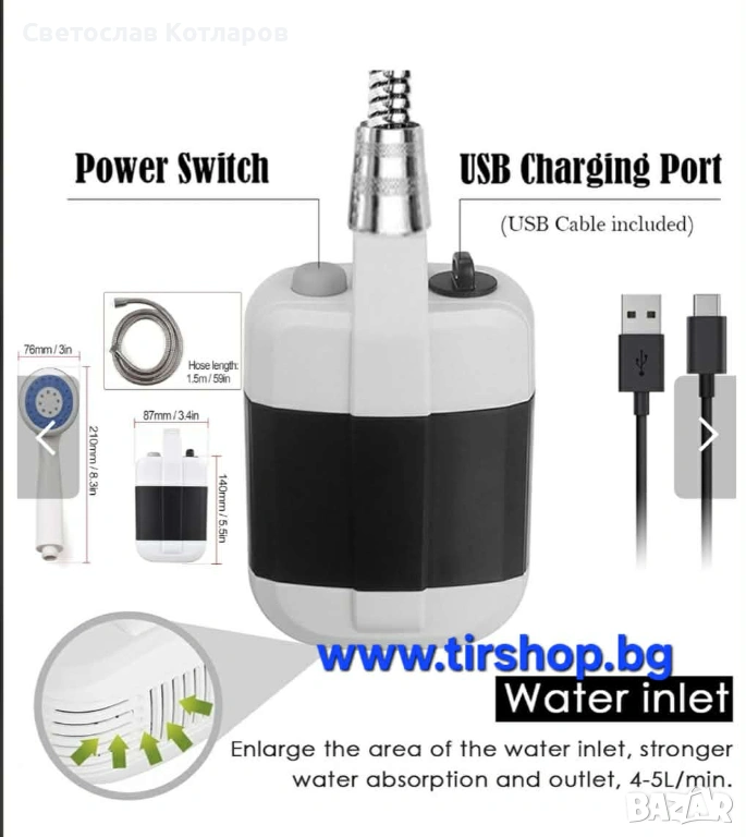 Благодарение на мощната презареждаща се литиево-йонна батерия и лесното зареждане чрез USB, можеш да се насладиш на освежаващ душ навсякъде и по всяко време.