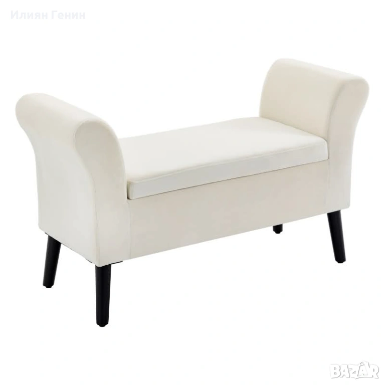 Елегантен дизайн: Тази стилна пейка се вписва перфектно във всеки интериорен дизайн. Плавните подлакътници и заострените крака я правят истинска забележителна и функционално допълнение за допълнителни места за сядане в антрето, под прозореца или в хола.