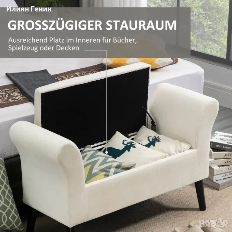 Пейка за съхранение HOMCOM, 111,5 см x 41 см x 65 см, кремаво бяла - 100.00 €.