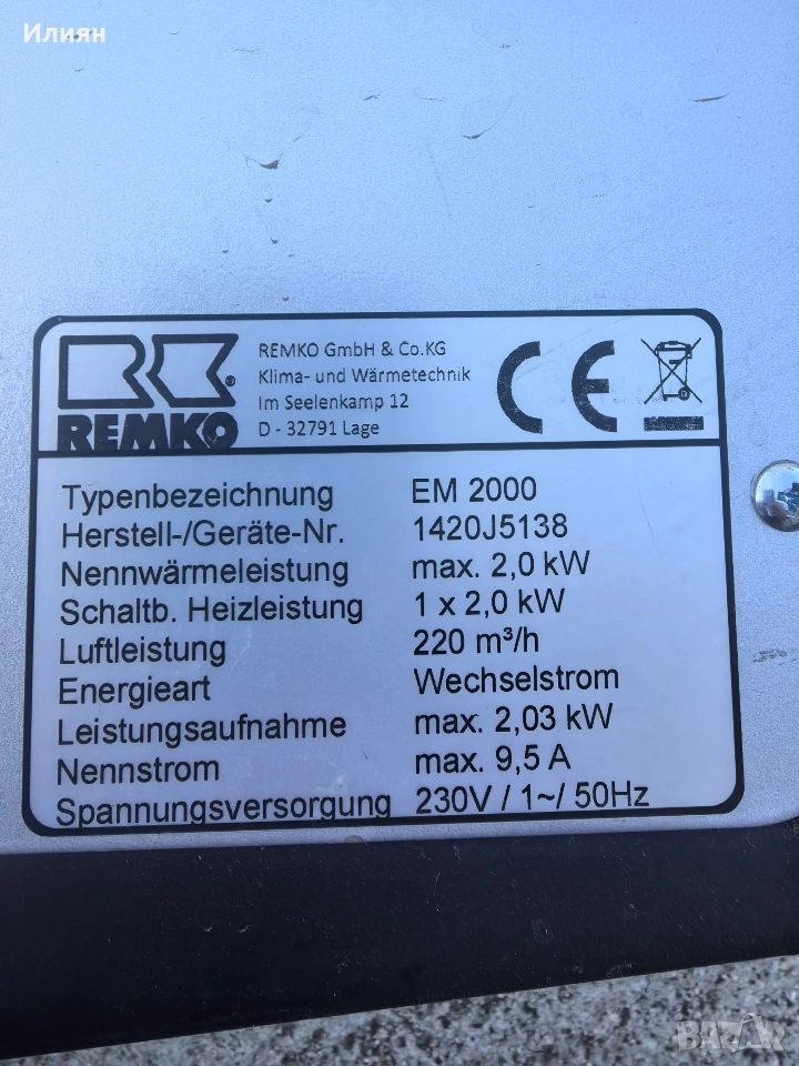 Продавам в перфектно състояние отоплителна електрическа печка на марката remko модел-em 2000