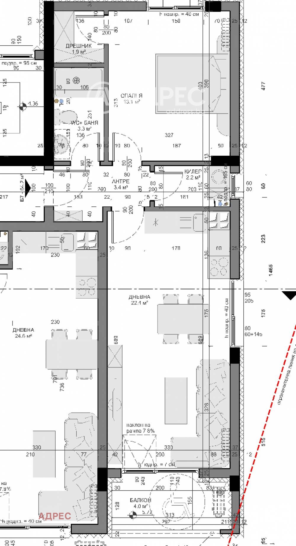 Нова пет етажна сграда в строеж, с два входа и само по четири апартамента на етаж. ГАРАНТИРАН ИНВЕСТИТОР. Асансьор и широки общи части приспособени и за инвалиди. Плоски покриви, без скосявания, изцяло покрити етажи -без отстъпи. Изключително практичен жилищен проект, като стаите са достатъчно големи и уютни и във всяко жилище има поне по два санитарни възела. В тристайните апартаменти спалните са със собствен дрешник и още три сервизни помещения. Практично, удобно и функционално! Моля разгледайте архитектурния проект към всяка обява, за по обстойна информация! Разсрочена схема на плащане!