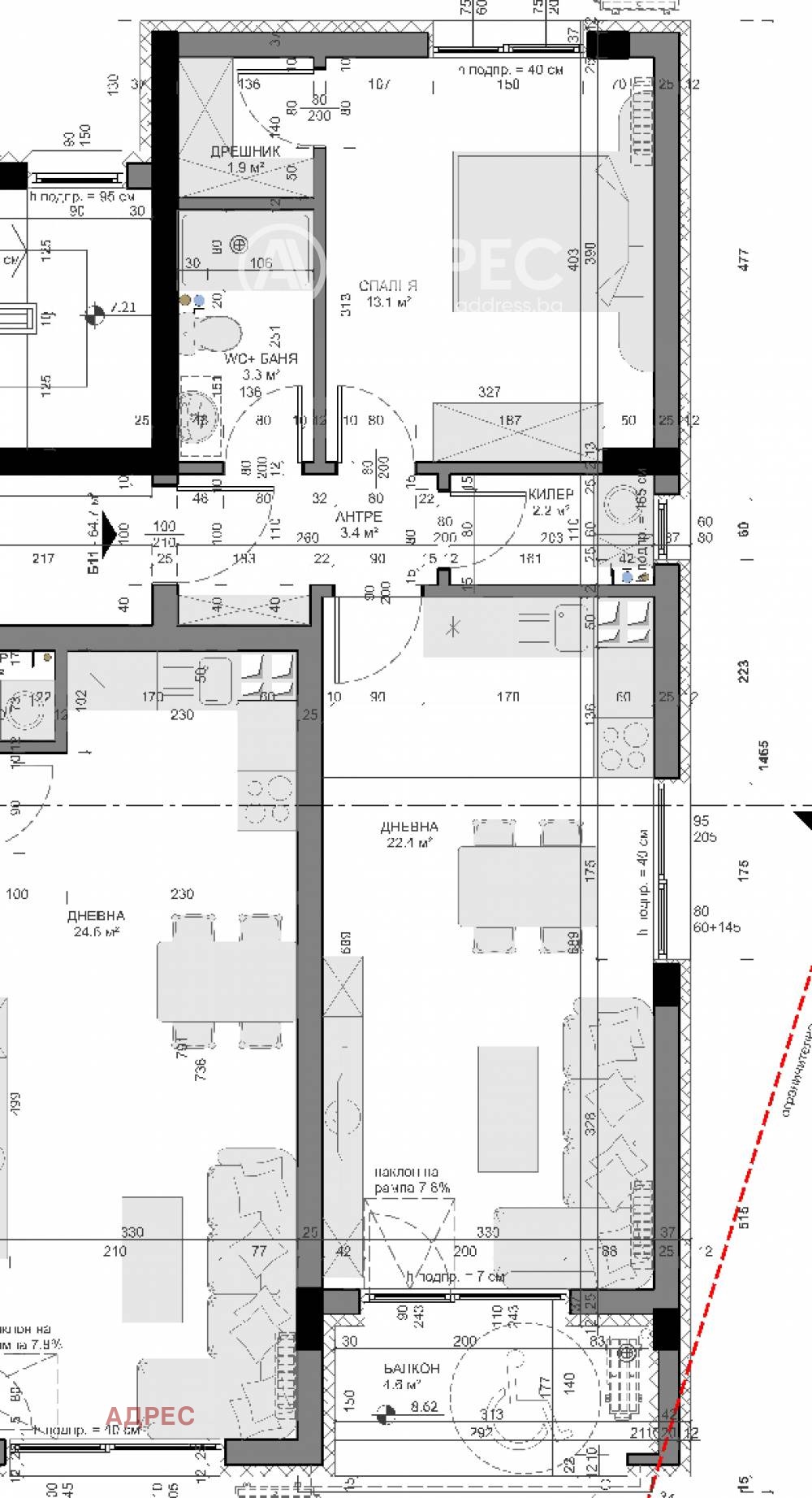 Нова пет етажна сграда в строеж, с два входа и само по четири апартамента на етаж. ГАРАНТИРАН ИНВЕСТИТОР. Асансьор и широки общи части приспособени и за инвалиди. Плоски покриви, без скосявания, изцяло покрити етажи -без отстъпи. Изключително практичен жилищен проект, като стаите са достатъчно големи и уютни и във всяко жилище има поне по два санитарни възела. В тристайните апартаменти спалните са със собствен дрешник и още три сервизни помещения. Практично, удобно и функционално! Моля разгледайте архитектурния проект към всяка обява, за по обстойна информация! Разсрочена схема на плащане!