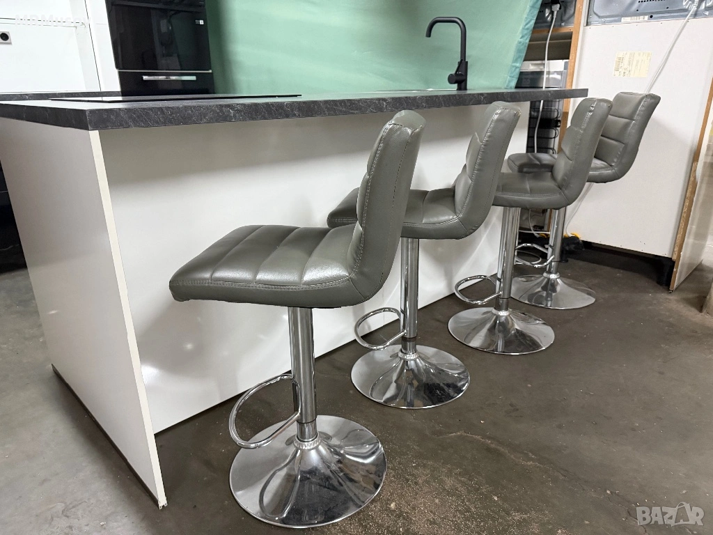 Остров с четери стола тип щъркел кожени регулируеми на височина