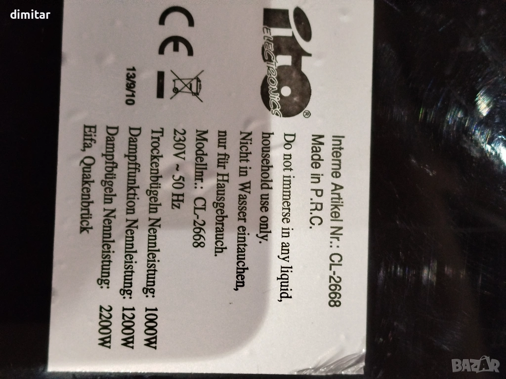 • Захранване: 220V/50Hz • 2200 W