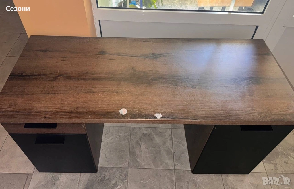 Има драскотини и потърквания само по горния плот (видими на снимките). В останалата част бюрото е запазено, здраво .Еконт Цена 60€