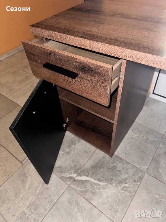 Бюрото е стабилно и функционално, с чекмедже и шкаф за съхранение. Подходящо както за офис, така и за домашно ползване.