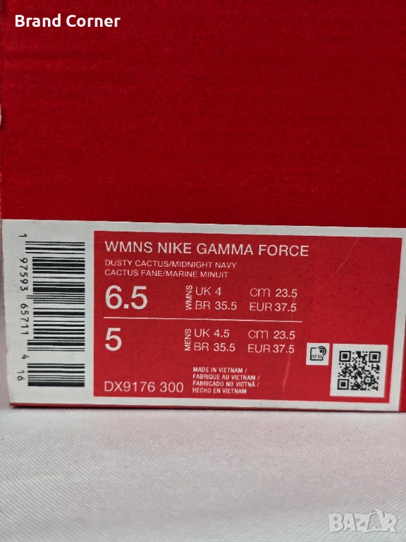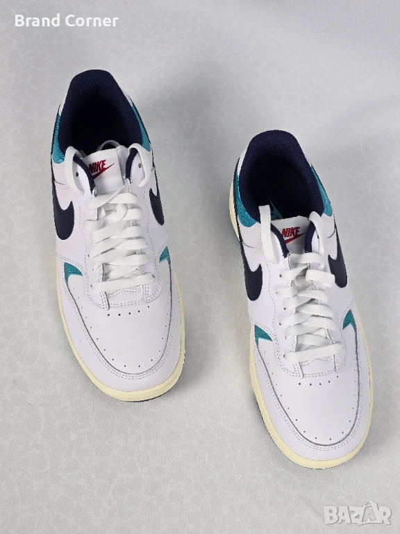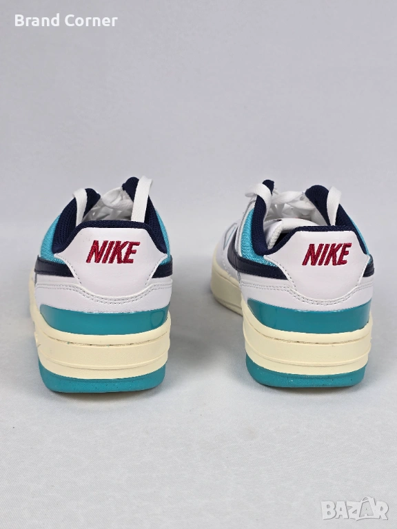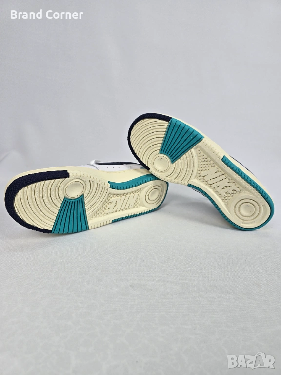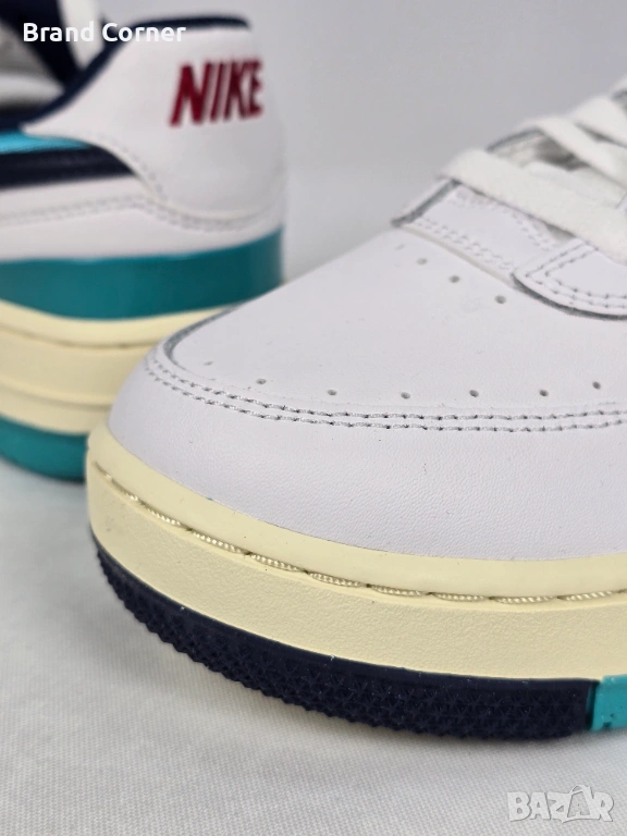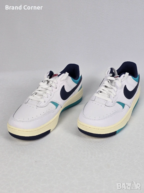 Нови дамски Nike Gamma Force в свежа и много лесна за комбиниране цветова комбинация: бяло, тъмносиньо, тюркоазено и кремава подметка.