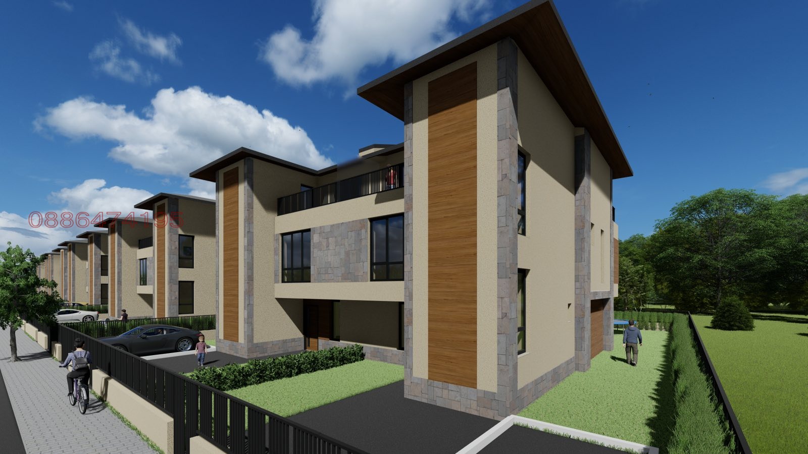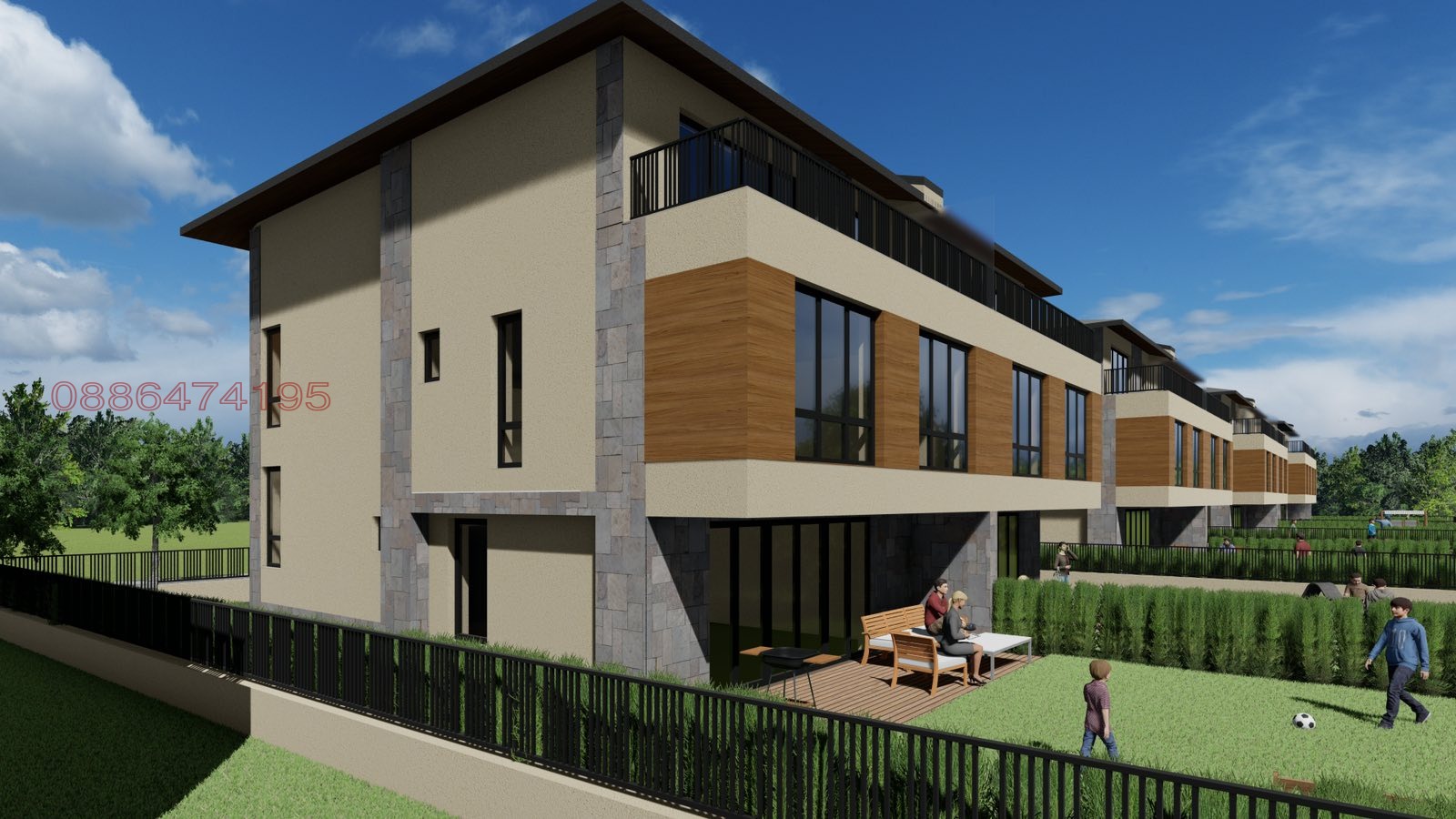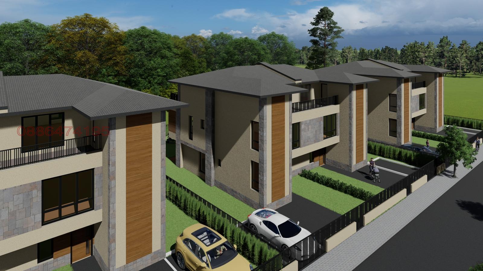 Комплекс от 5 редови къщи близнаци, организирани 2х2 - общо 10 къщи, като всяка си има обособен собствен двор от 283 кв.м., с по 1 или 2 Паркоместа.