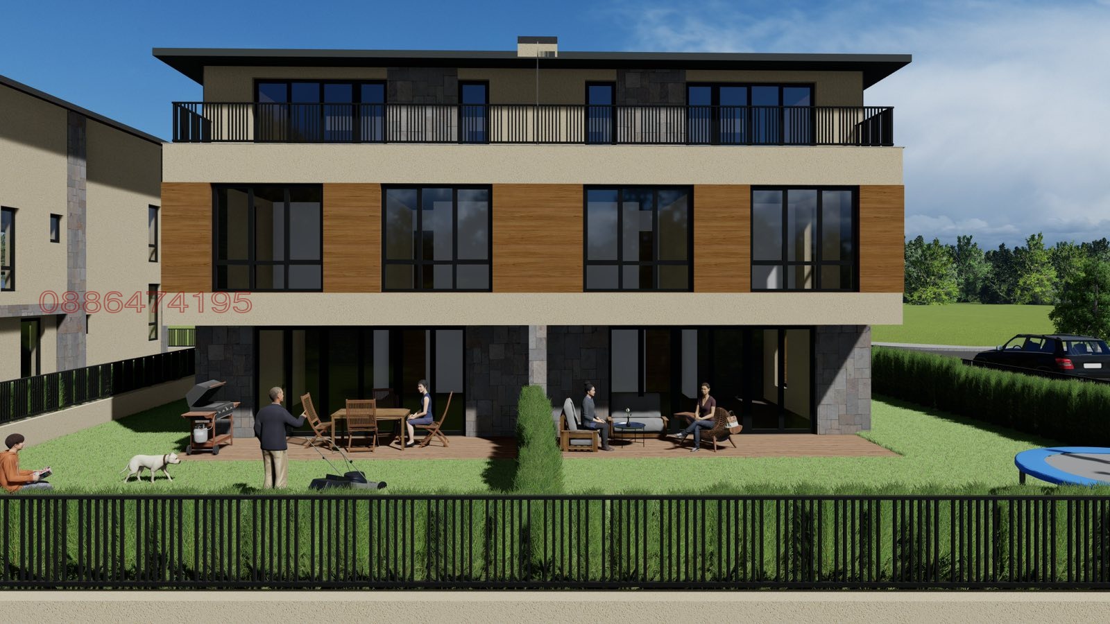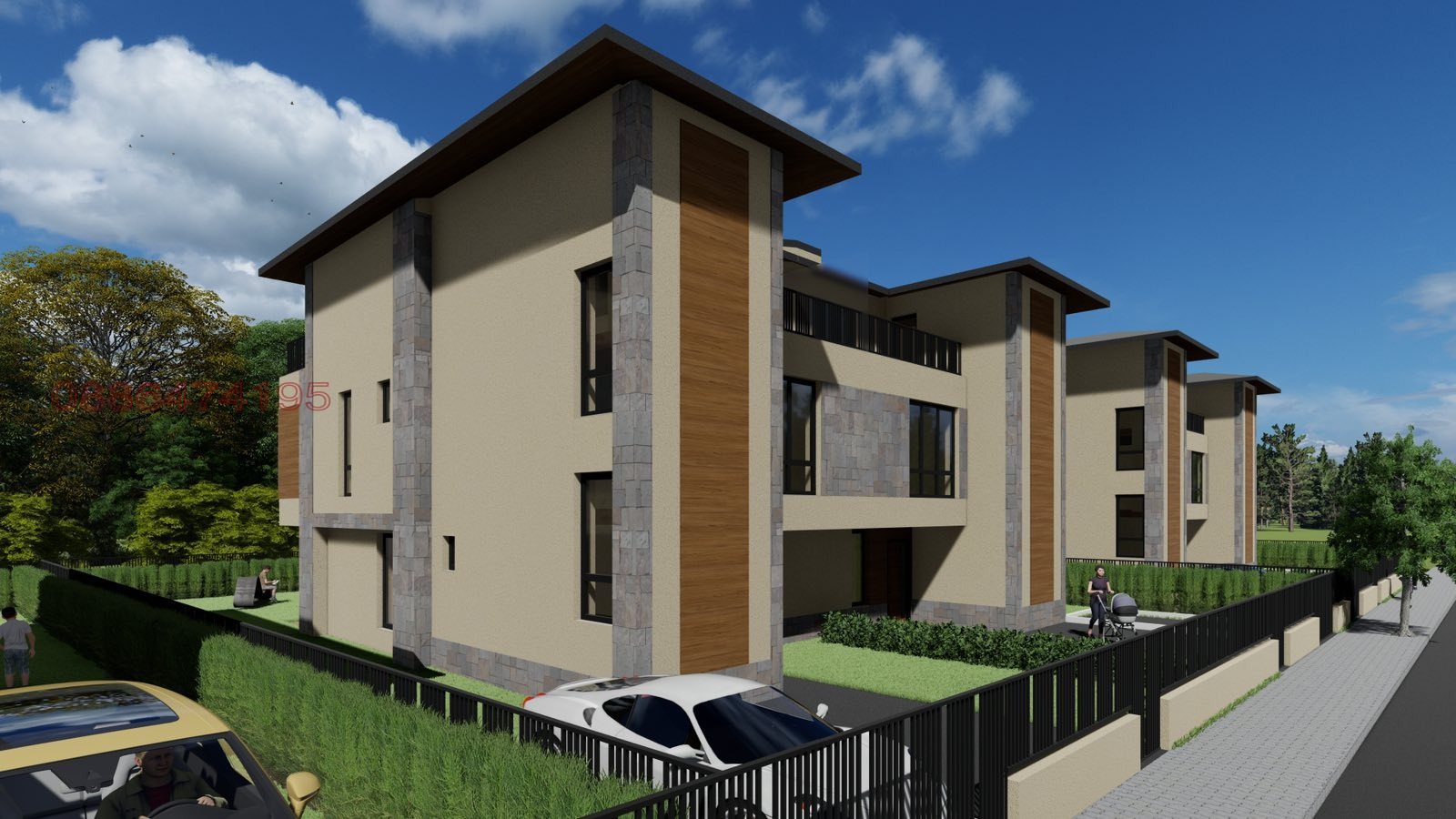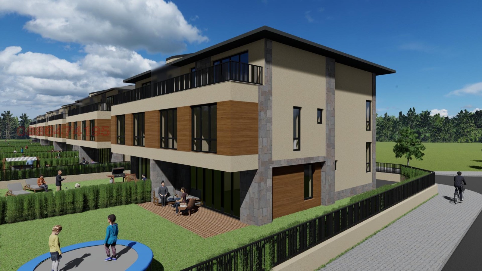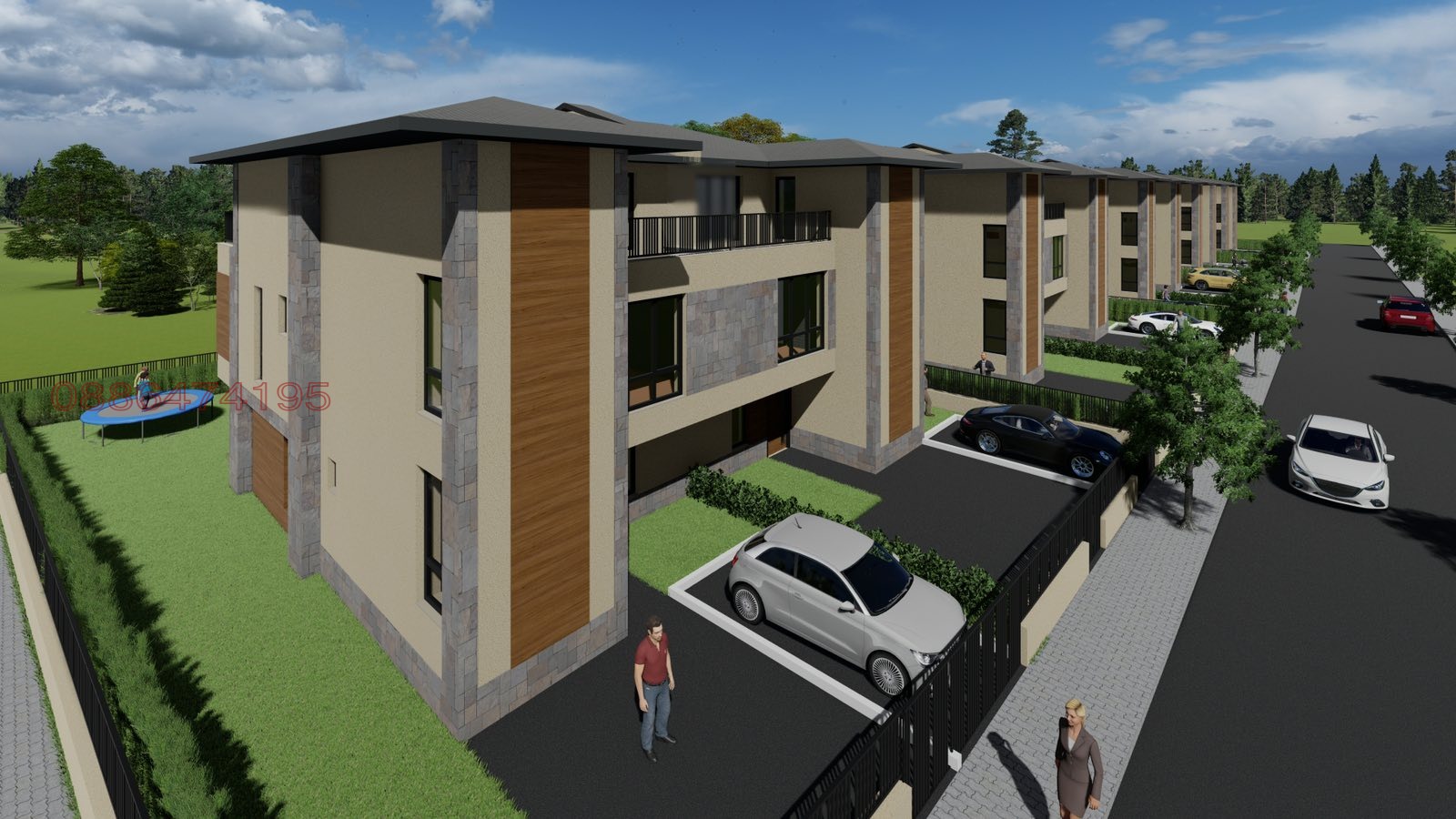 Комплекс от 5 редови къщи близнаци, организирани 2х2 - общо 10 къщи, като всяка си има обособен собствен двор от 283 кв.м., с по 1 или 2 Паркоместа.