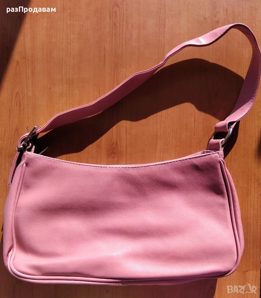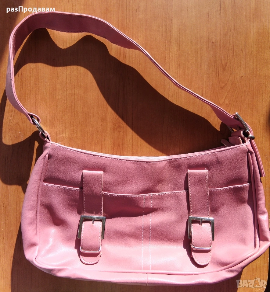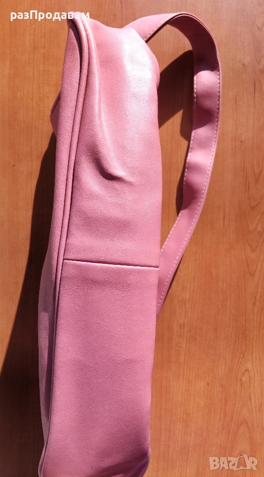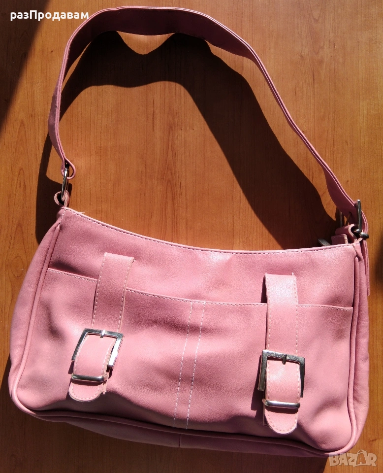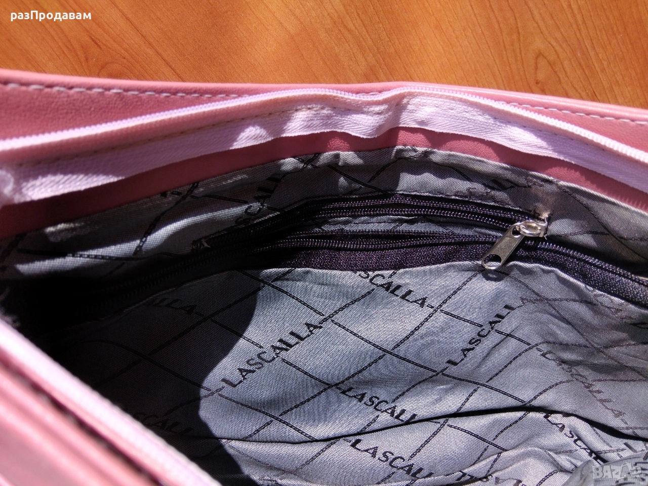 Нова кожена Чанта ~ марка Lascalla. Розова на цвят, с външни и вътрешни отделения и джобове с ципове.