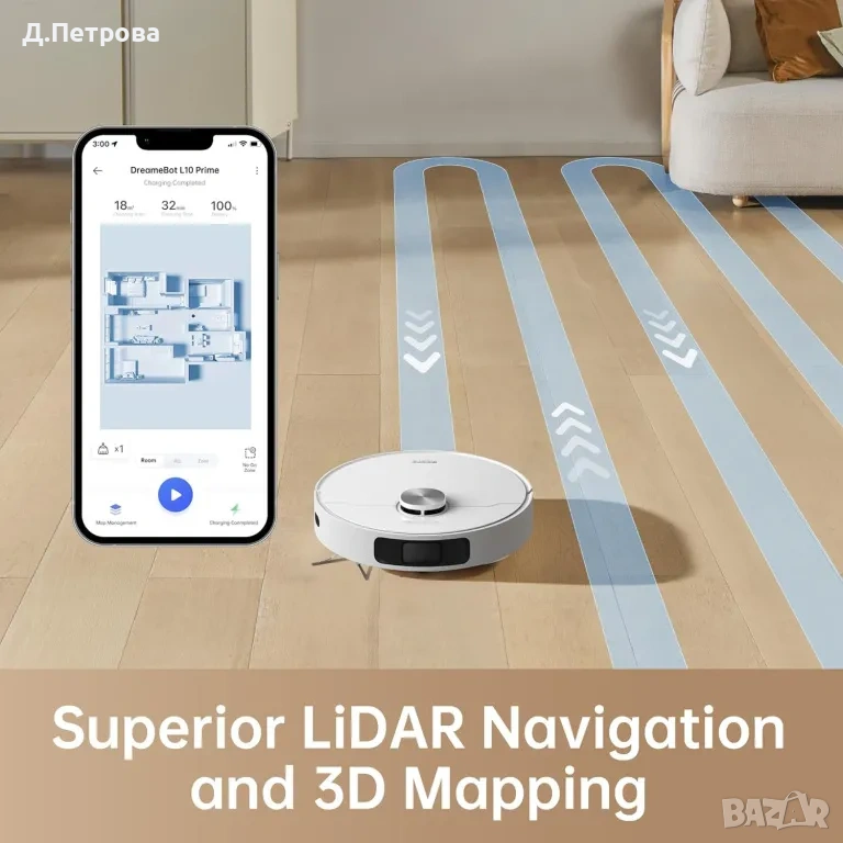 * LiDAR навигация + 3D картографиране – интелигентно обхожда дома без да се блъска