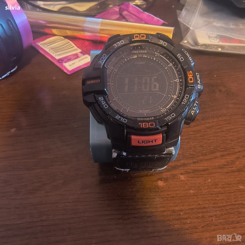Protrek PRG 270b - работещи сензори, поставен протектор на екрана, безела и сиплея са без забележки, оригиналната каишка е със следи. Цена 90 евро.
