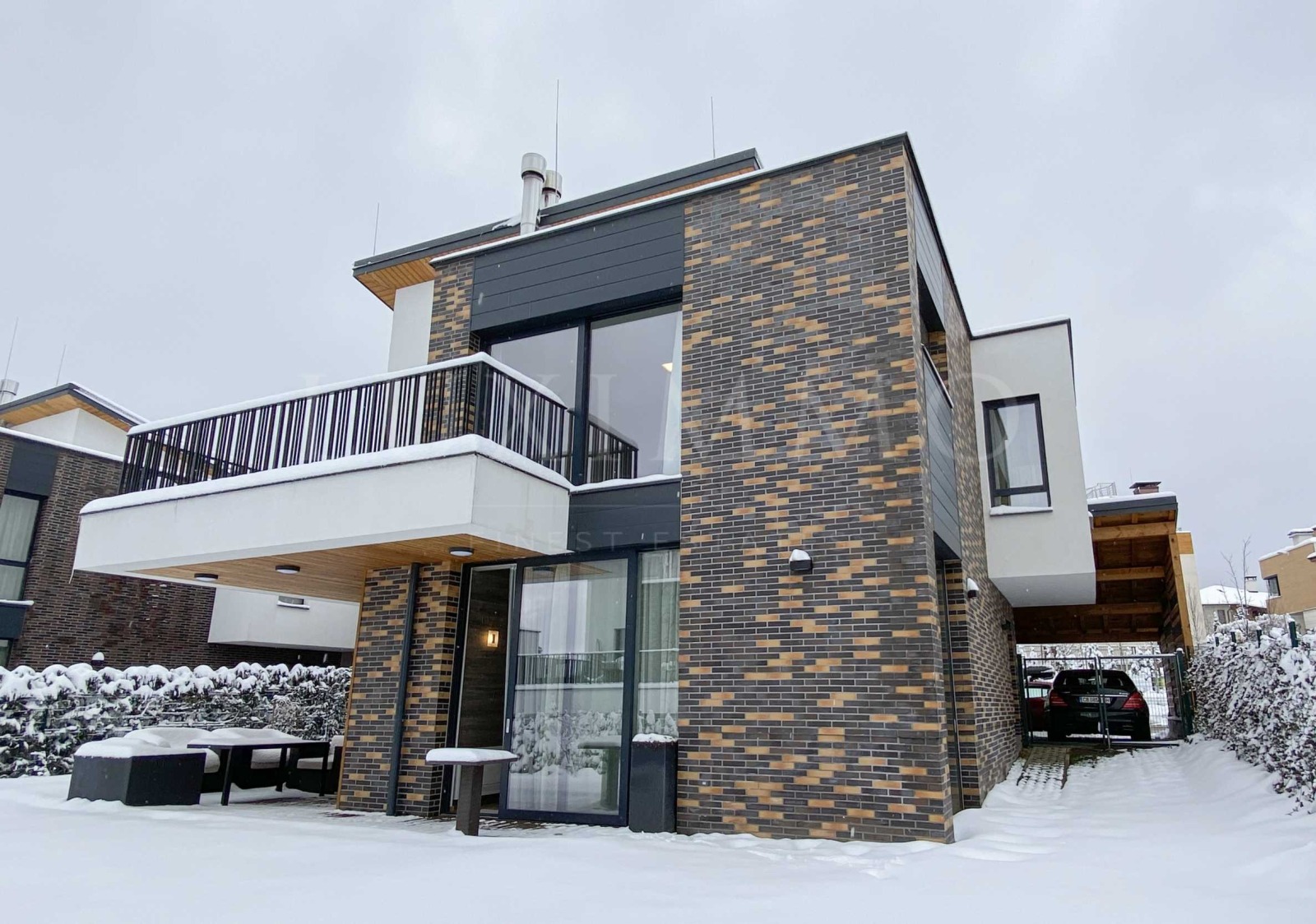 Самостоятелна еднофамилна къща в прекрасен затворен комплекс, в полите на Витоша. Комбинацията от чистия въздух в подножието на природния парк, тихият район и бързият достъп до Околовръстен път, Ринг мол, множество бизнес сгради и др. са само част от удобствата на тази локация.