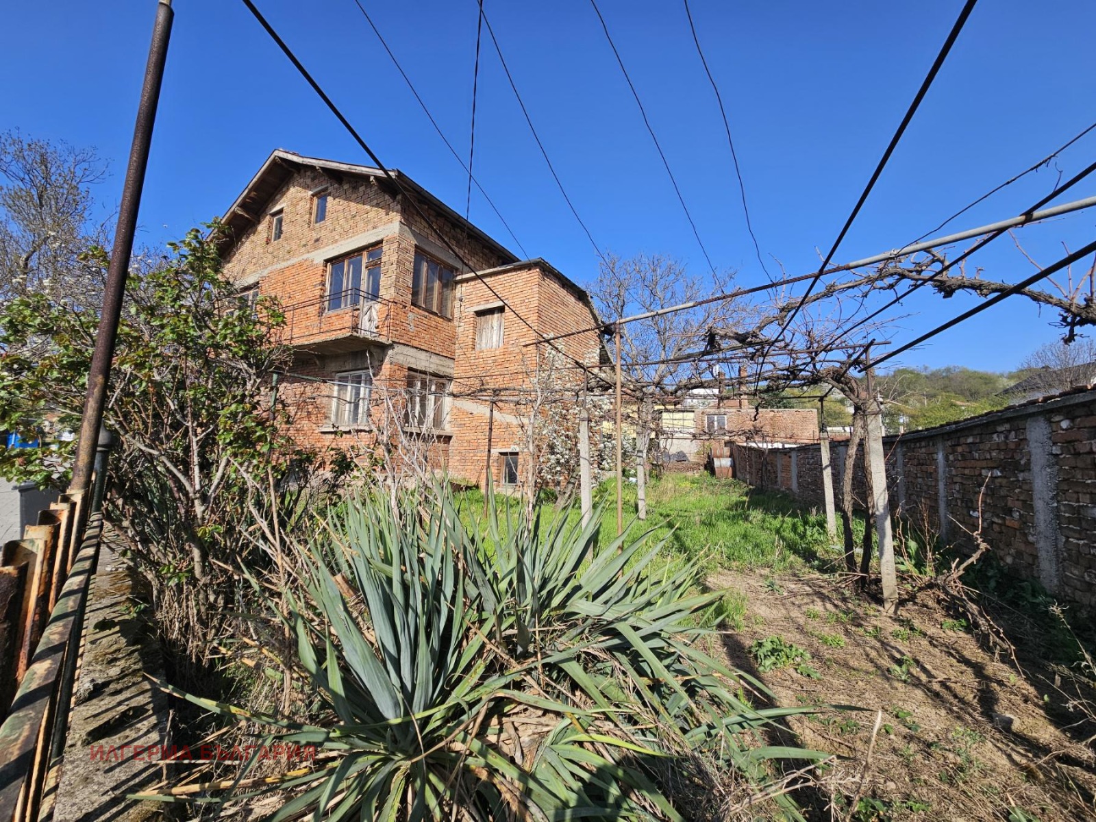 Имотът разполага с двор с площ от 580 кв.м с лице на две улици. Дворът е равен и озеленен. Разгъната застроена площ (РЗП) от 240 кв.м на два етажа, което осигурява множество възможности за обособяване на функционално жилищно пространство. Има и подпокривно ниво.