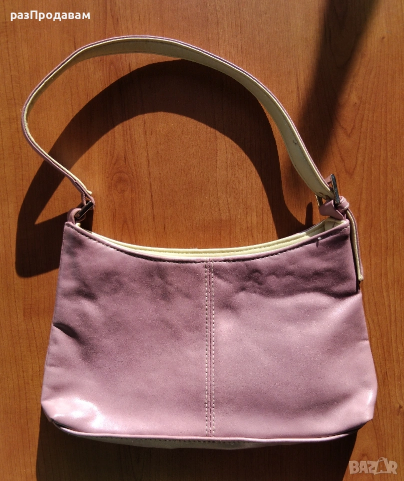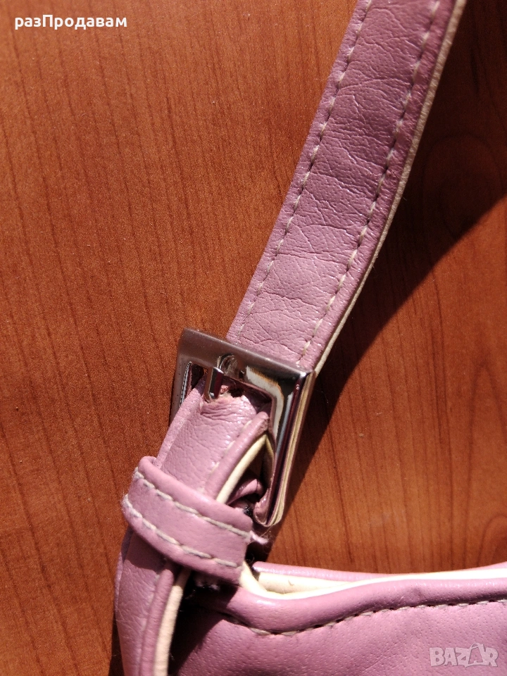 Нова малка кожена чантичка. Розово ~ лилава на цвят .С елегантни токи отстрани. С вътрешно джобче и ципове. Подходяща и за момиче и за Жена ...