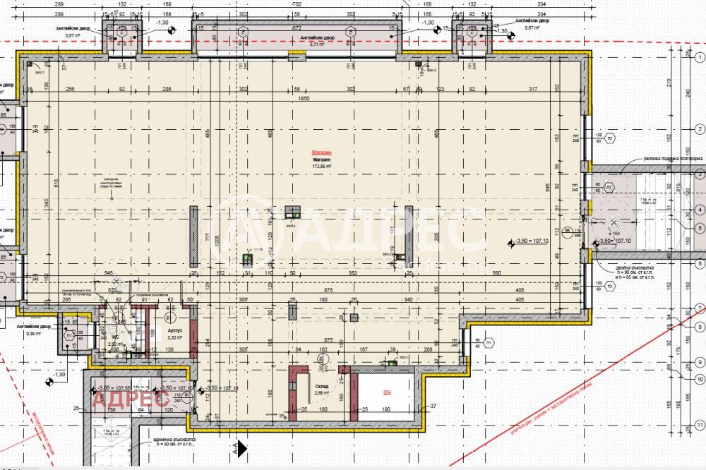 Търговско помещение в новострояща се сграда с отлична видимост Предлагаме просторно търговско помещение с площ 212 кв.м, разположено на партер в новострояща се сграда. Имотът разполага с височина на таваните 3,20 м, което осигурява усещане за простор и позволява разнообразни интериорни решения според нуждите на бъдещия собственик или наемател. Помещението има широко и представително лице към улица, което гарантира отлична видимост и лесен достъп за клиенти. Подходящо е за различни видове дейности магазин, шоурум, офис, медицински център, фитнес, студио за услуги или представителство на фирма. Имотът разполага с мощност от 120 kW трифазен ток, което го прави изключително подходящ и за дейности, изискващи по-голям електрически капацитет. Към помещението са осигурени 3 паркоместа, което е голямо предимство за клиенти и персонал. Отлична възможност както за развитие на собствен бизнес, така и за инвестиция с потенциал за добра доходност.