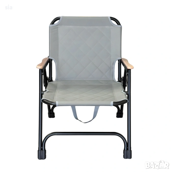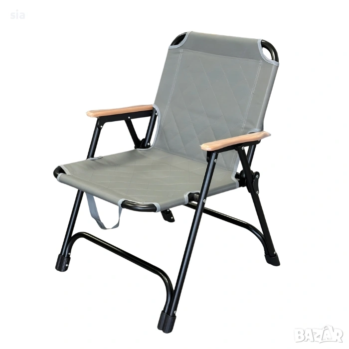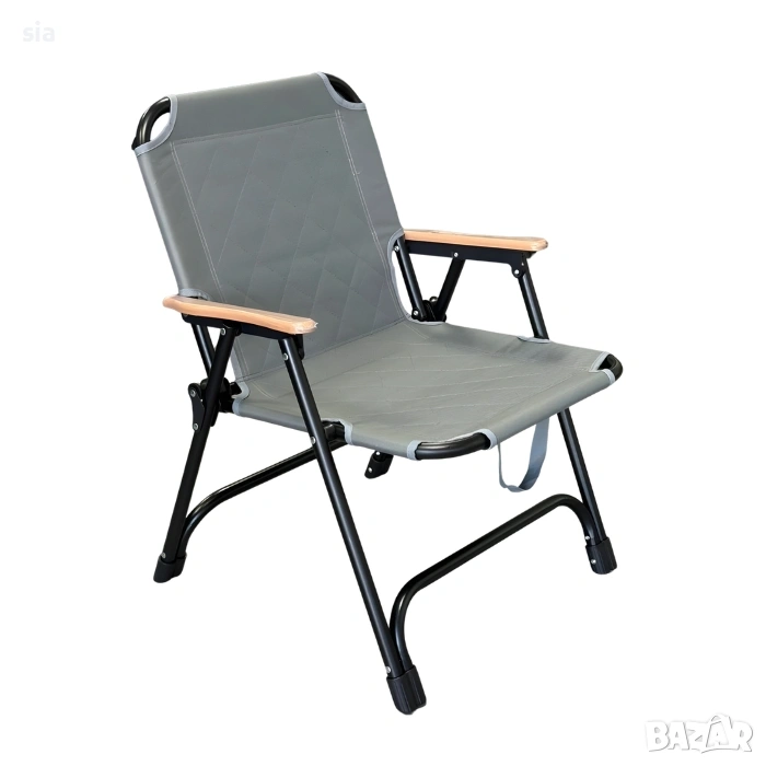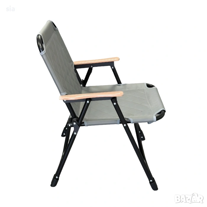 Подлакътниците са с дървено покритие, което придава стилен завършек и допълнително удобство. Благодарение на сгъваемия механизъм, столът се прибира бързо и лесно, което го прави изключително удобен за пренасяне и съхранение.