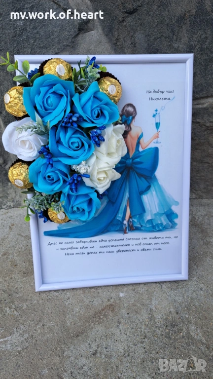 Картина с букет и послание , снимка 1 - Подаръци за жени - 54340816 Картина с букет и послание , снимка 2 - Подаръци за жени - 54340816 1/2