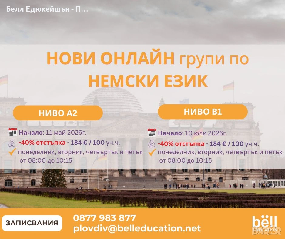 НОВИ ОНЛАЙН групи по НЕМСКИ ЕЗИК - започни с -40%!