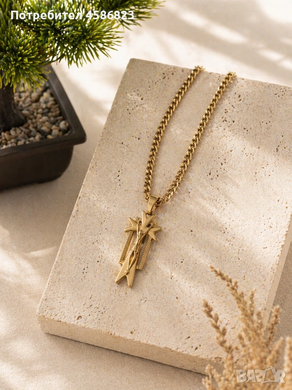 Продавам стилен златен кръст с масивна верижка, подходящ както за ежедневно носене, така и за специални поводи. Моделът е изключително впечатляващ – с релефен дизайн и фигура на Исус, придаваща силно присъствие и характер.