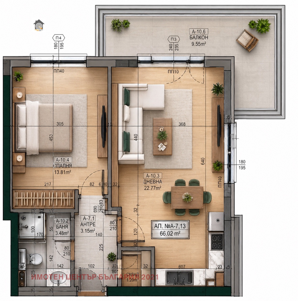 Двустаен апартамент в новострояща се сграда на утвърден инвеститор с плащания на различните етапи на строителството. Сградата се намира в близост до околовръстен път и е заобиколен от жилищни комплекси с ниски сгради и висок процент озеленяване. Перфектен е както за собствено ползване, така и за отдаване под наем като ние от 'Имотен център България' предлагаме цялостно управление на имота със сигурен ежемесечен доход на пазарната цена, дори и при период без наематели. От нас може да очаквате: