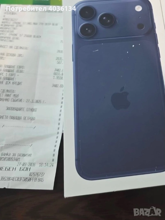Чисто нов телефон Iphone 17 Pro Max, цвят: Deep Blue, 2 TB, с гаранция 1 години, не отварян