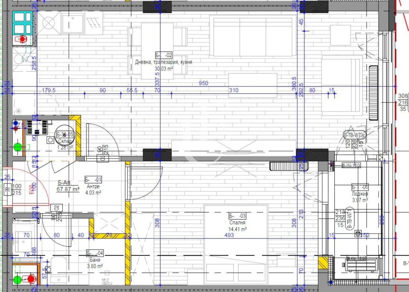 Разпределението на апартамента влючва входно антре, хол с кухненски бокс, сплня, баня с тоалетна и тераса с великолепна панорамна гледка Ref. ID:28201
