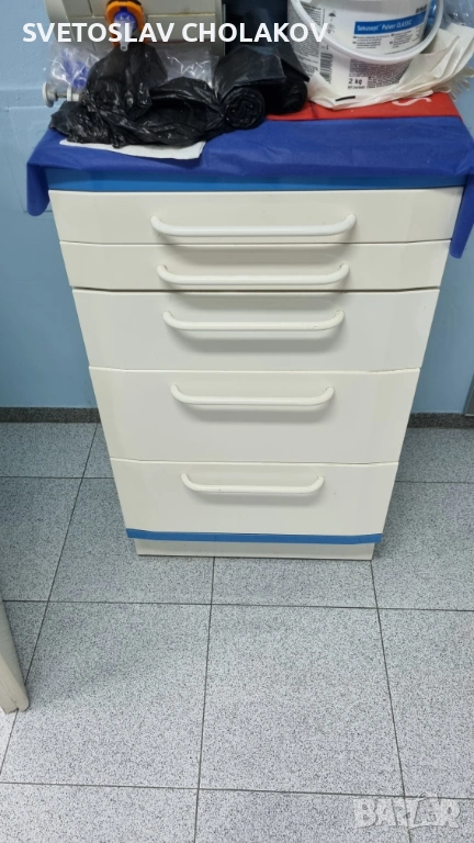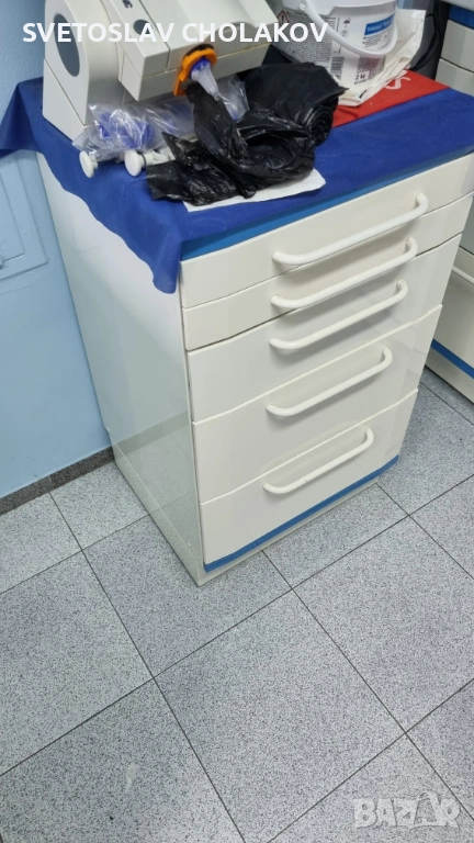 Медицински шкаф ARIES (италиански) с 5 чекмеджета. Изработен е от здрави материали,издържащи на интезивна употреба и дезинфекция. Запазено е! Имам и други шкафове от тази серия на aries. За Пловдив лично предаване.