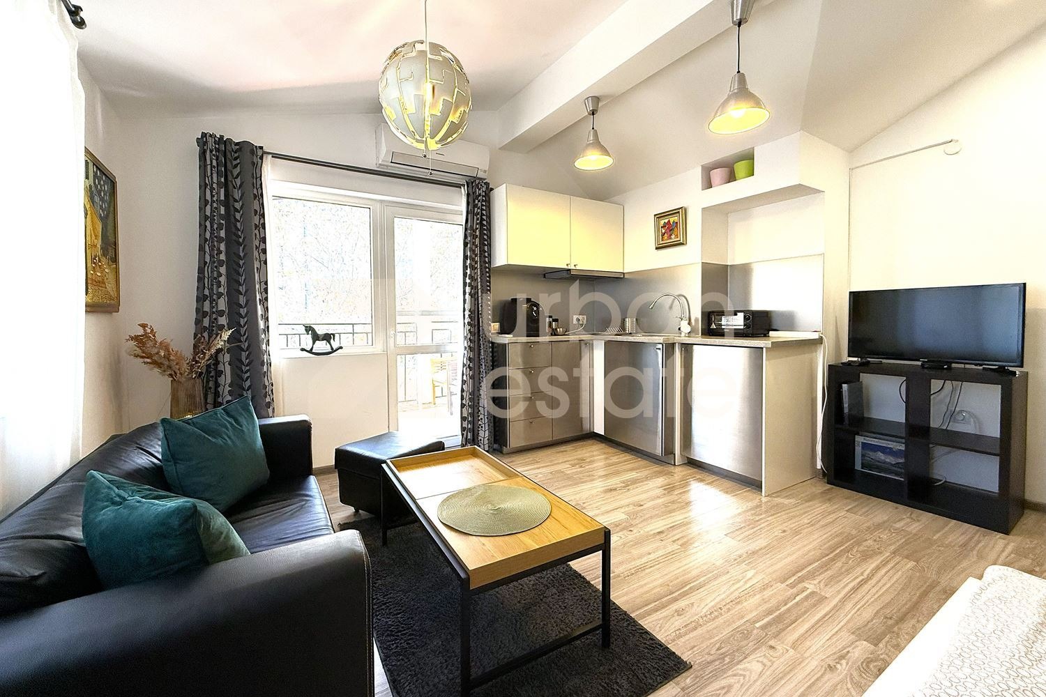 Urban Estate is pleased to present a studio apartment for rent, located on Bacho Kiro Street, in the immediate vicinity of TZUM (Central Universal Store), Serdika Metro Station, and the city's cultural heart.