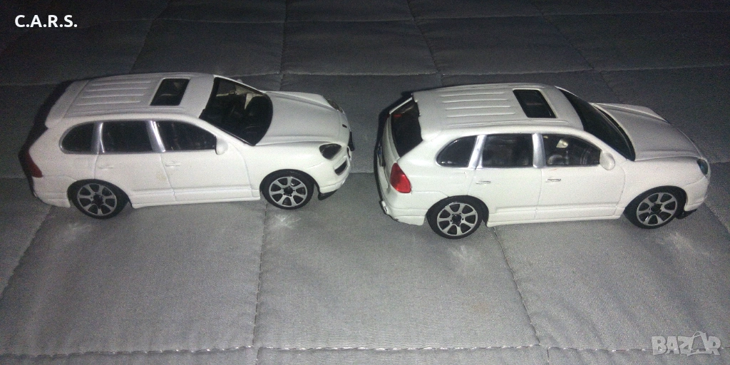Bburago Porsche Cayenne White - Мащаб 1:43. Двете заедно за 8 EURO, само една е 5 EURO. Цената не се коментира.