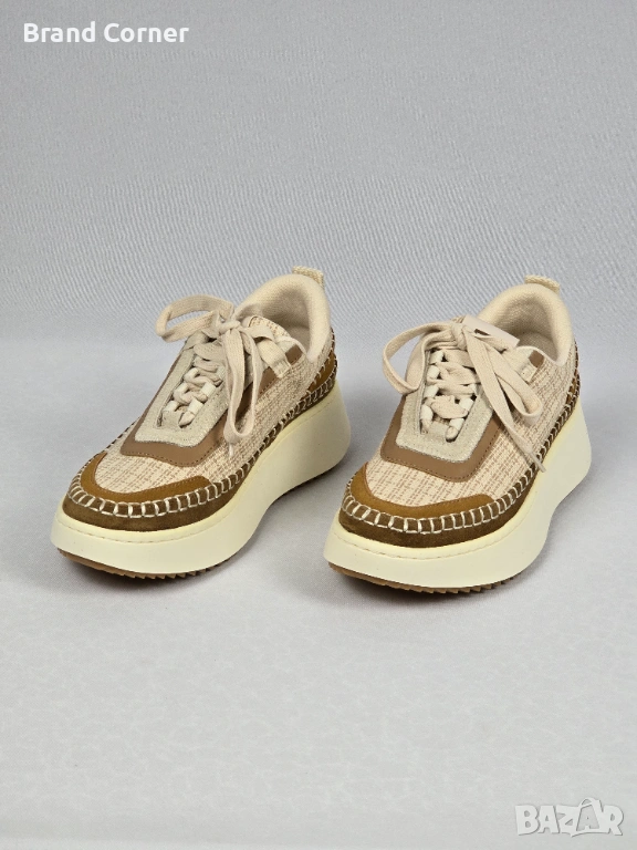 Моделът е модерен chunky sneaker с платформа, в много актуална комбинация от бежово, екрю и кафяво. Обувките съчетават текстилна горна част с декоративни кожени/велурени елементи, контрастни шевове по контура и релефна подметка в карамелен цвят. Много ефектен модел, подходящ както за ежедневни визии, така и за по-спортно-елегантен стил.
