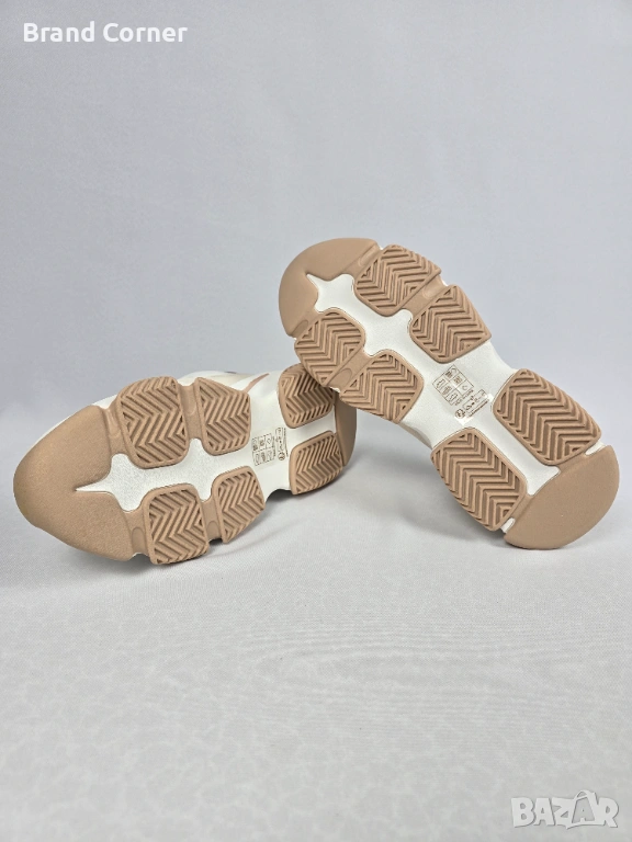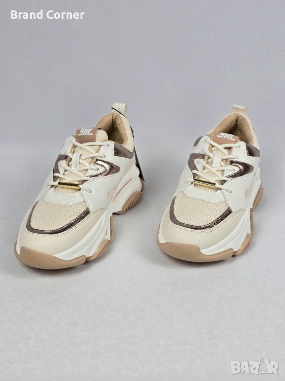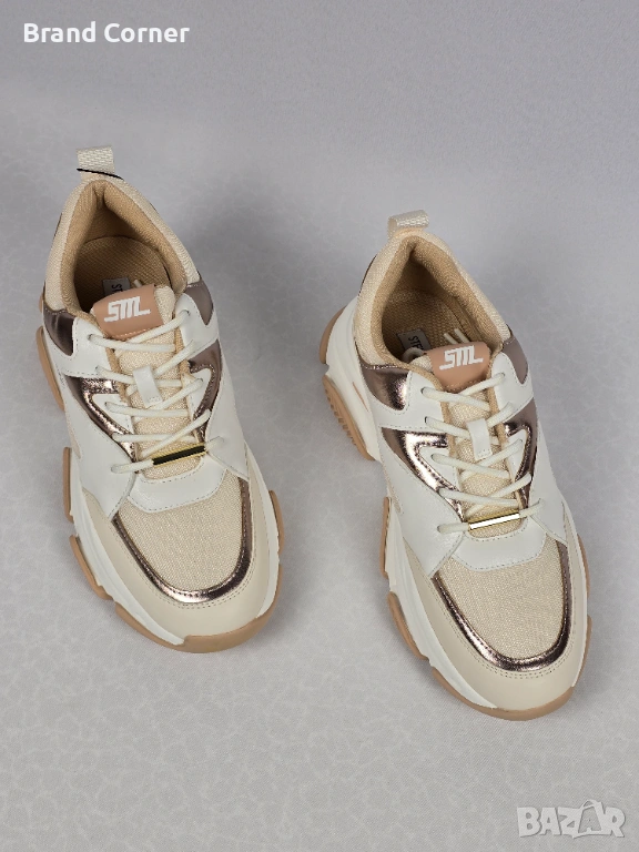 Моделът е в много актуална комбинация от кремаво, бежово и розово-златист металик, с модерна chunky подметка и спортно-елегантна визия. Подходящи са както за ежедневни аутфити с дънки и панталон, така и за по-спортно-елегантни комбинации.