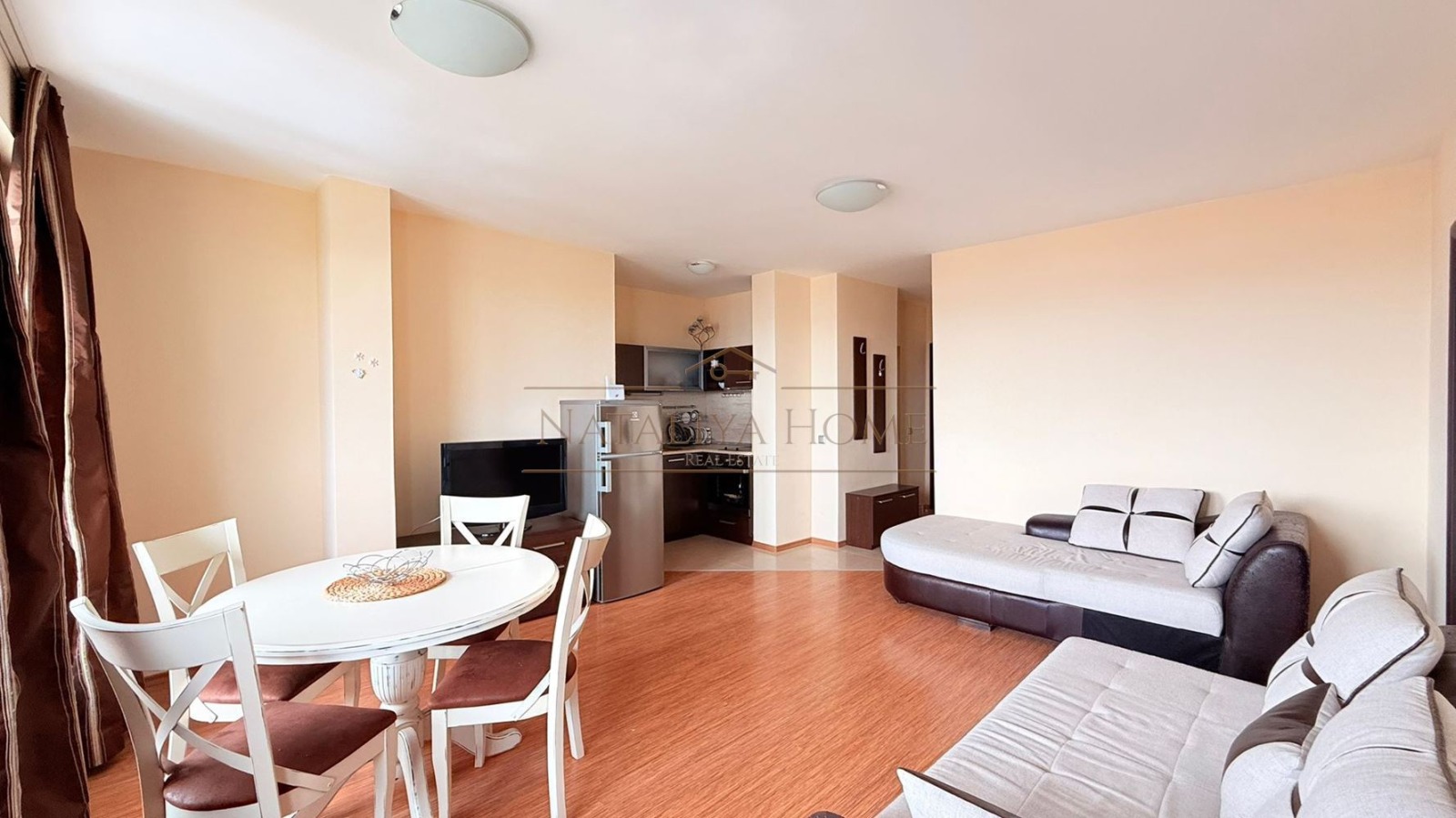 Жилището е функционално разпределено и включва антре, светла всекидневна с обособена кухненска част, уютна спалня, баня/WC и тераса с излаз от двете стаи, от която се открива красива гледка към морето. Апартаментът се продава напълно обзаведен и оборудван, готов за нанасяне или отдаване под наем.