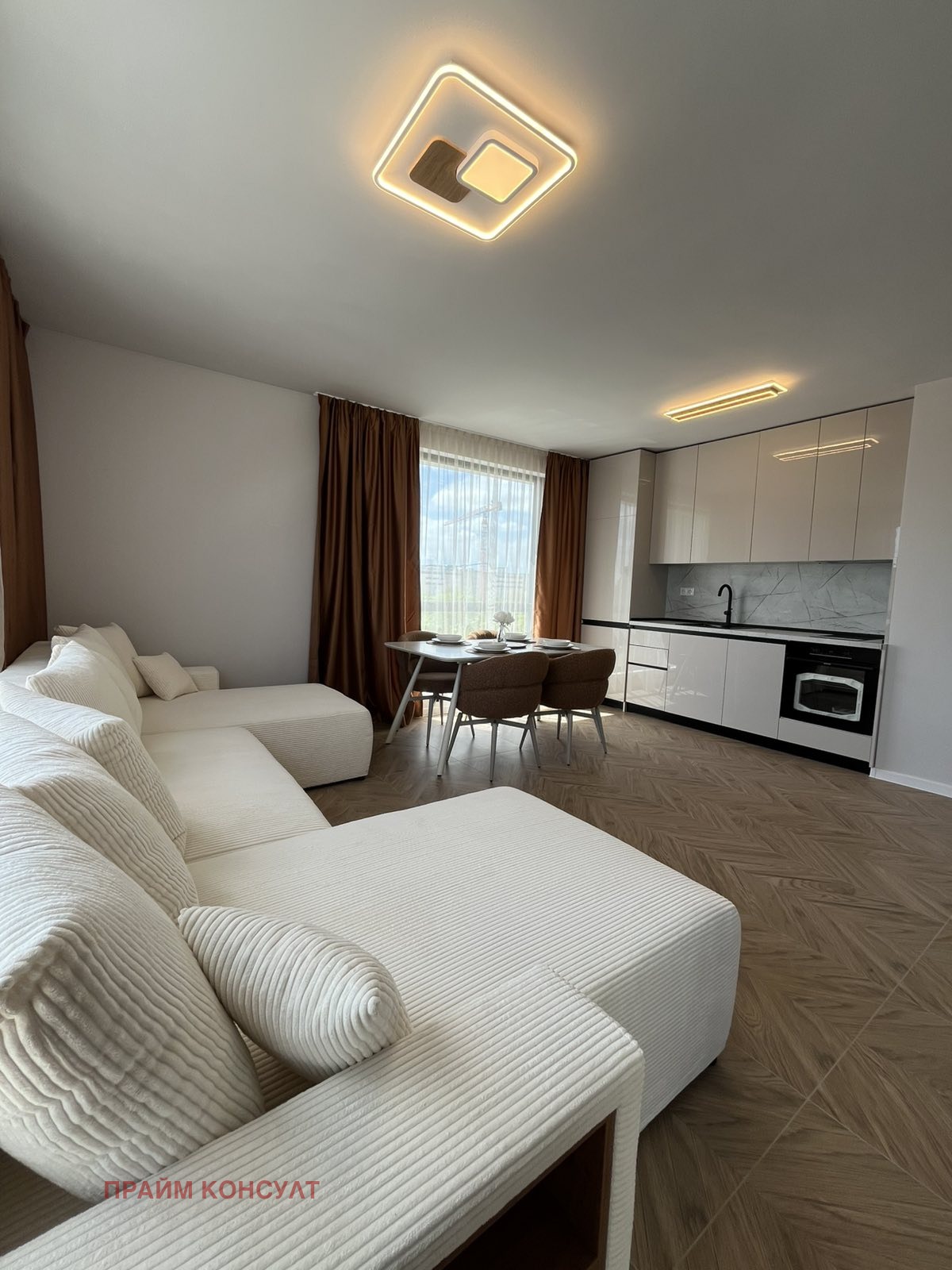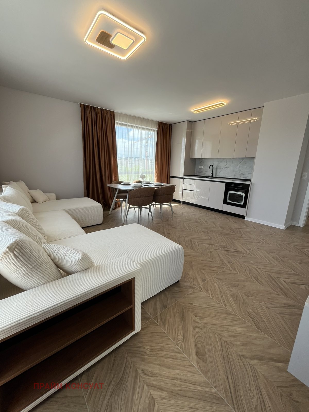 Предлагаме тристаен напълно обзаведен апартамент на комуникативно място в непосредствена близост до големи хранителни вериги,супермаркети градини и училища.Имота с изложение изток-юг разположен на 4-ти жилищен етаж в чисто нова сграда.