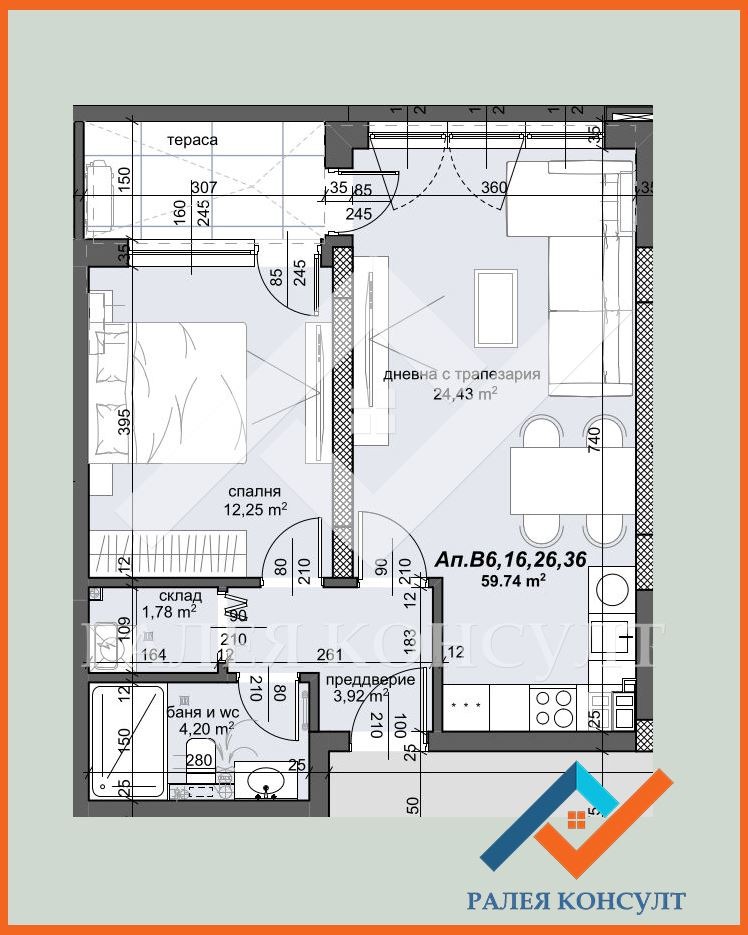 РАЛЕЯ КОНСУЛТ предлага за продажба 2-стаен апартамент в новострояща се жилищна сграда в гр. Пловдив, Кв. Тракия.