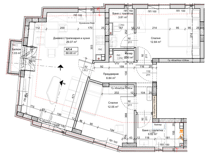 Бутикова сграда с по 2 апартамента на етаж