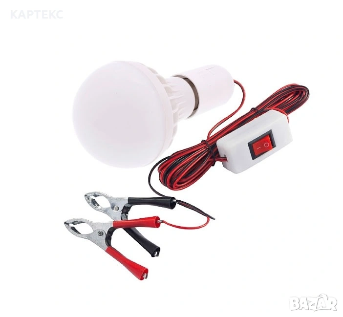 Модел: 45037 Акумулаторна LED лампа с кабел и щипки за акумулатор. Изключително подходящ при извършване на ремонтни дейности в гаража, работилницата и т.н. Свързва се към акумулатора. Напрежение: DC 12V Мощност: 9W Вграден превключвател. Енергоспестяващи светодиоди. Кабели: 4 метра. Практичен и удобен.