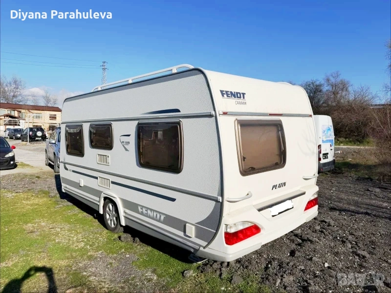 Каравана FENDT PLATIN 2009.Много свежа, като НОВА ! Никога не е имала течове, няма гнило, няма мухъл, няма неприятни миризми. Тегло 1100 кг. , тегли се леко и приятно. Нови накладки. Профилактирана ходова част, жила, теглич. Газов бойлер, резервна гума, манивела, редуцирвинтили за газ и вода, соларен панел, телевизор, акумулатор. С РЕГИСТРАЦИЯ -без допълнителни каквито и да било такси.
