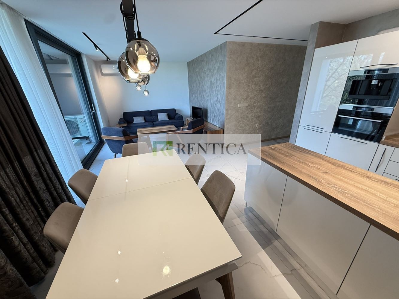 Оферта 8658 ✅ Rentica.bg предлага под наем НОВ, луксозно обзаведен тристаен апартамент, който се намира в кв. Чайка, на първа линия, в близост до Морската градина. Апартаментът е разположен на четвърти жилищен етаж в НОВА сграда с асансьор и луксозни общи части. Състои се от всекидневна в едно с кухня, оборудвана с всичко необходимо за домакинството, две спални, баня с тоалетна, тераса. Отоплението е с климатици. ВКЛЮЧЕНО ПАРКОМЯСТО В ЦЕНАТА!!! Отдава се дългосрочно.