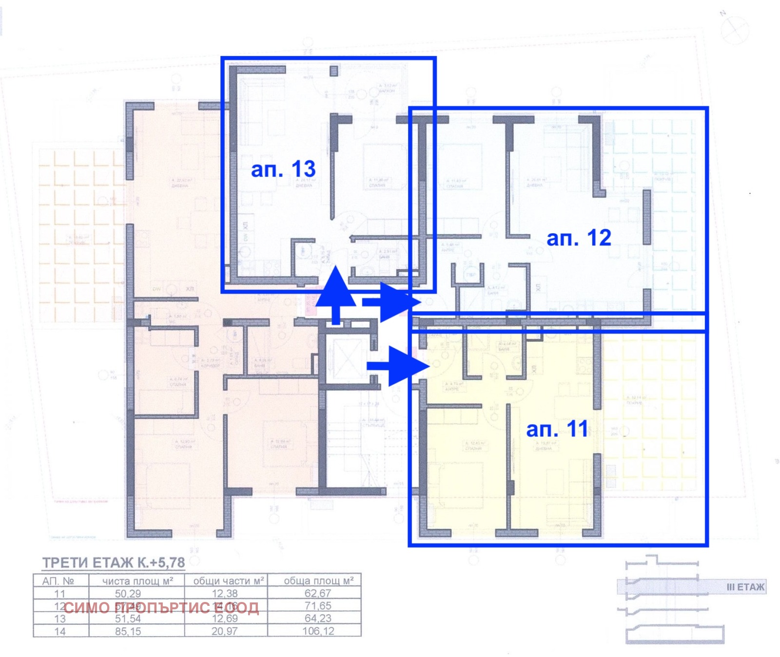 Квадратурата и цената на апартаментите е както следва:
