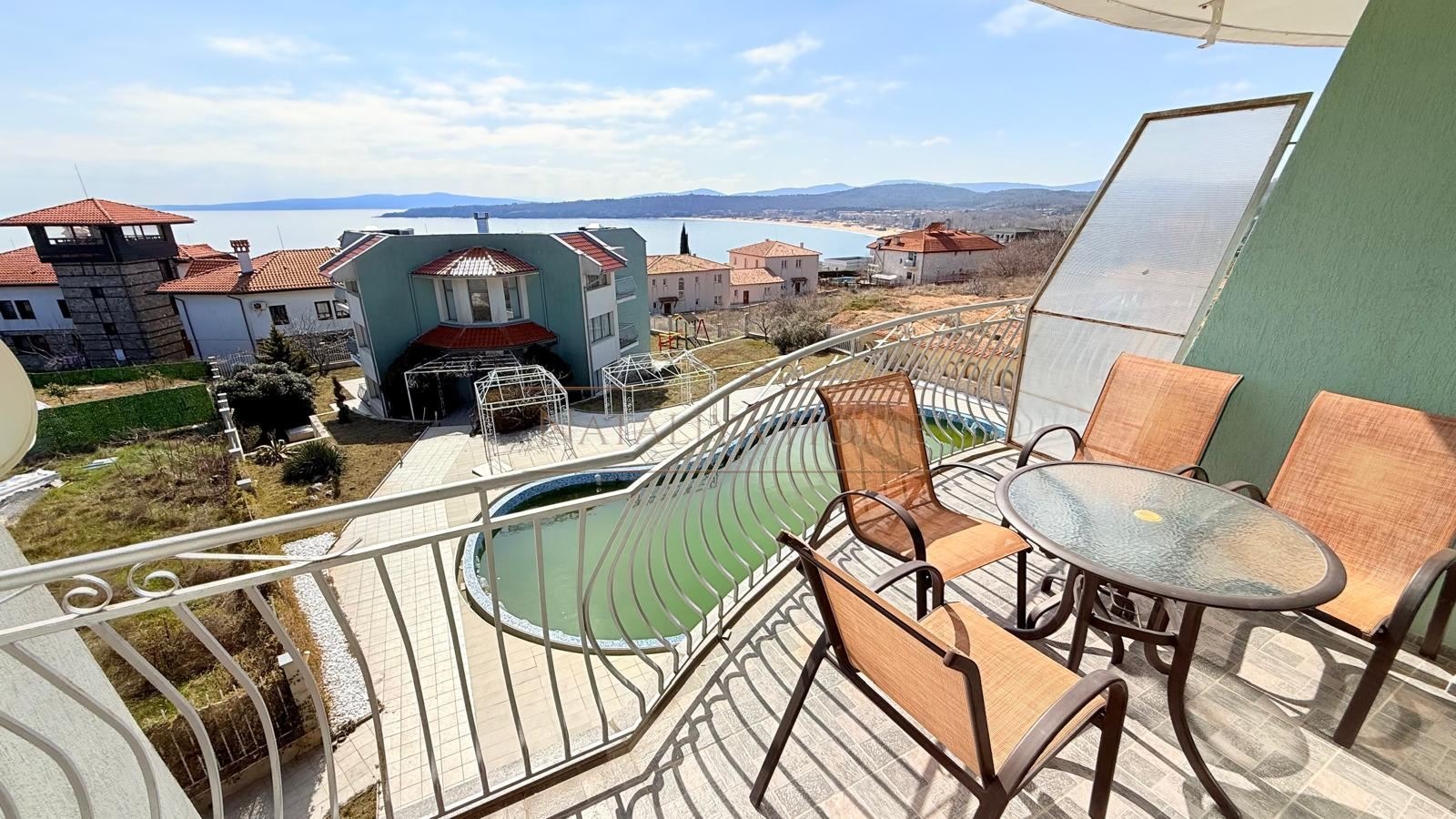 Жилището е разположено в малък, тих и озеленен комплекс с контролиран достъп, паркинг и красив басейн, само на 5 минути пеша от плаж Каваци.