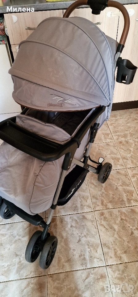 Детска количка на Чиполино Характеристики: Подходяща за новордени бебета и деца с тегло до 22 кг Олекотена рама Лесно и компактно сгъване с една ръка Облегалката се регулира в много позиции, според нуждите на детето Сваляема табличка за детето 5-точков предпазен колан Меки раменни подложки Голям регулиращ се сенник с прозорче Поставката за крачета се регулира Удобна дръжка от висококачествен материал Голямо отделение за багаж . Амортисьори на предните колела Свързана спирачка на задните колела Мека подложка на седалката Поставка за чаша или шише Покривало за крачета.. Никакви забележки няма така като е ползвана изключително лека, удобна и маневрена. Към нея подарявам раница,чанта за шишета и кърпички ,дъждобран и комарник, и чедър.