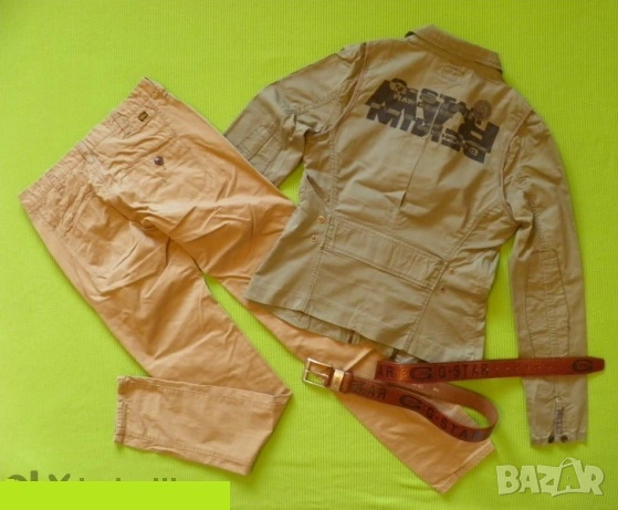 2.G-Star Raw дамски памучен панталон модел Page Chino Tapered Coj wmn- 20€. Размер W26/L32: обиколка на колана 78 см., обиколка на ханша 100 см., дължина 102, дълбочина 19 см. Обличан е броени пъти, в перфектно състояние. 3.G-star колан естествена кожа-ПРОДАДЕН. Продават се и отделно, но ако купите повече от един артикул, поемам доставката. Предлагам много разнообразни артикули. Ако имате интерес, може да разгледате всички мои обяви. Благодаря за отделеното време и ви желая приятно пазаруване!
