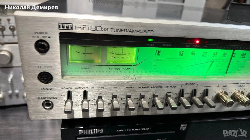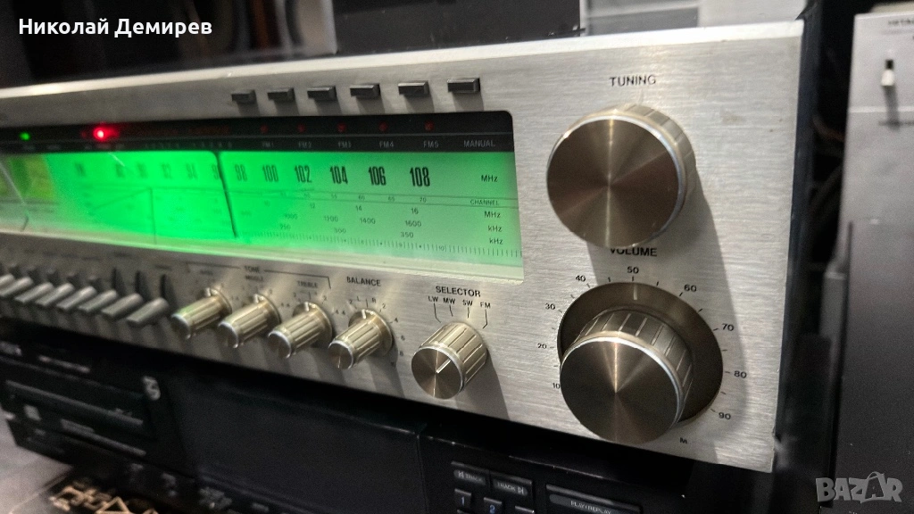 Чудовищен ресиивър работещ прекрасно като усилвател много запазен външно с по 4 транзистора на канал общо 8 идентични с Pioneer SA 9500 mk-2.