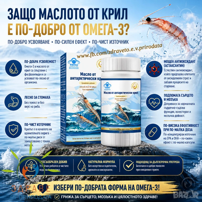 💡 И двата продукта съдържат ценните Омега-3 мастни киселини (EPA и DHA)… но разликата е в усвояването и ефекта.🔥 Ето защо маслото от крил се счита за по-добър избор: