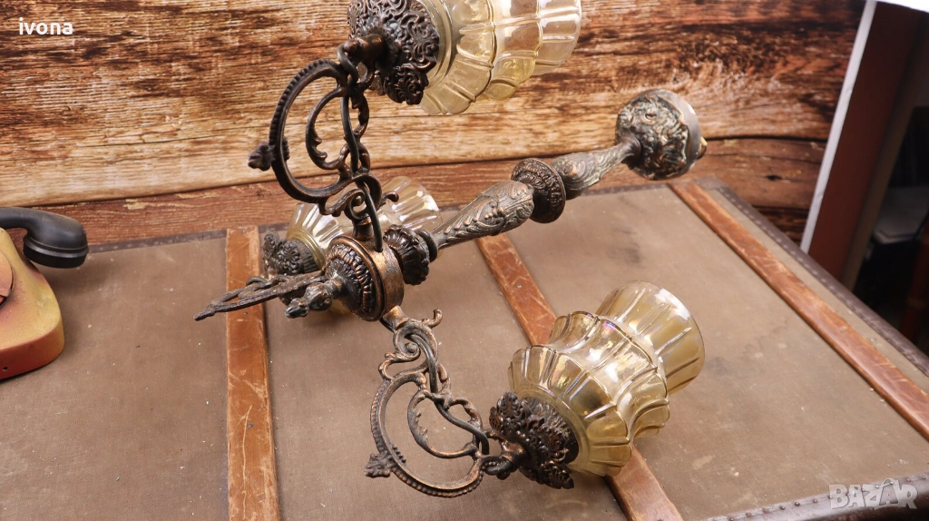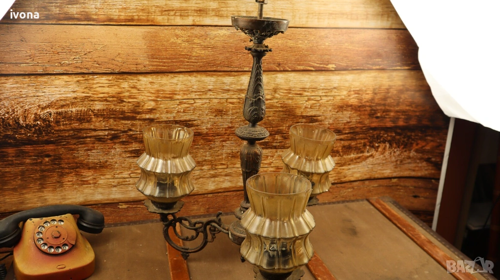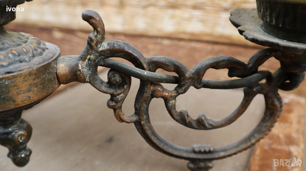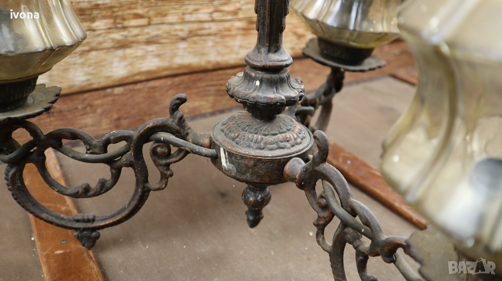 Стар полилей от мед и бронз. Три лампи с фасунга E27. → Обява 54343844