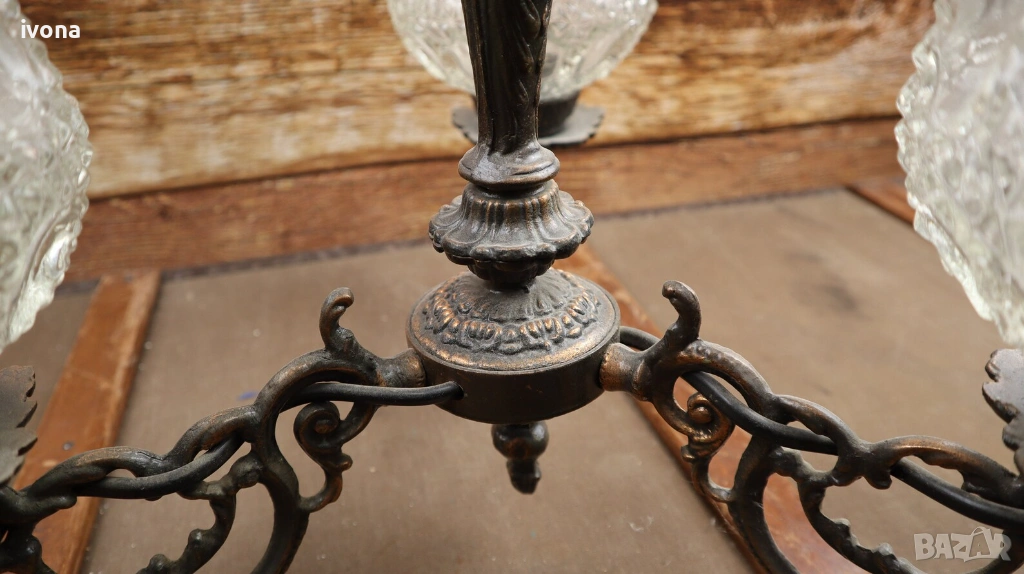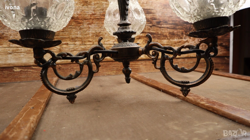 Стар полилей от мед и бронз. Три лампи с фасунга E27. → Обява 54344019